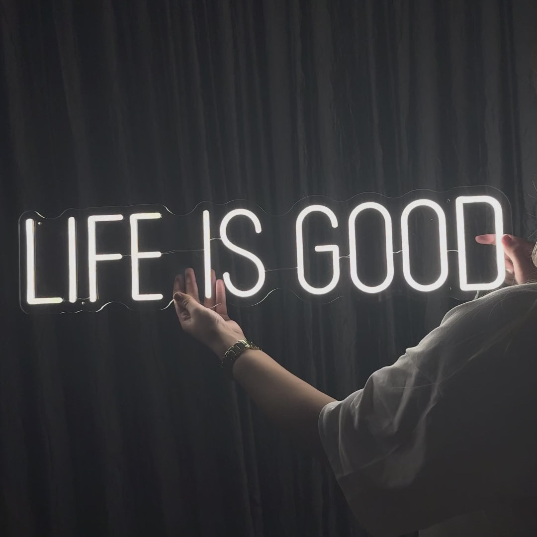 Neon lighting, neon sign, neon light, and LED neon come together in our collection to offer an unforgettable experience. Using advanced LED neon technology, our lighting products are energy-efficient, durable, and safe to use. Every detail has been carefully designed to create a magical appearance that transforms your space. Let yourself be enchanted by the brilliance of our "Life is good" neon lighting and enjoy the positive vibes it brings.