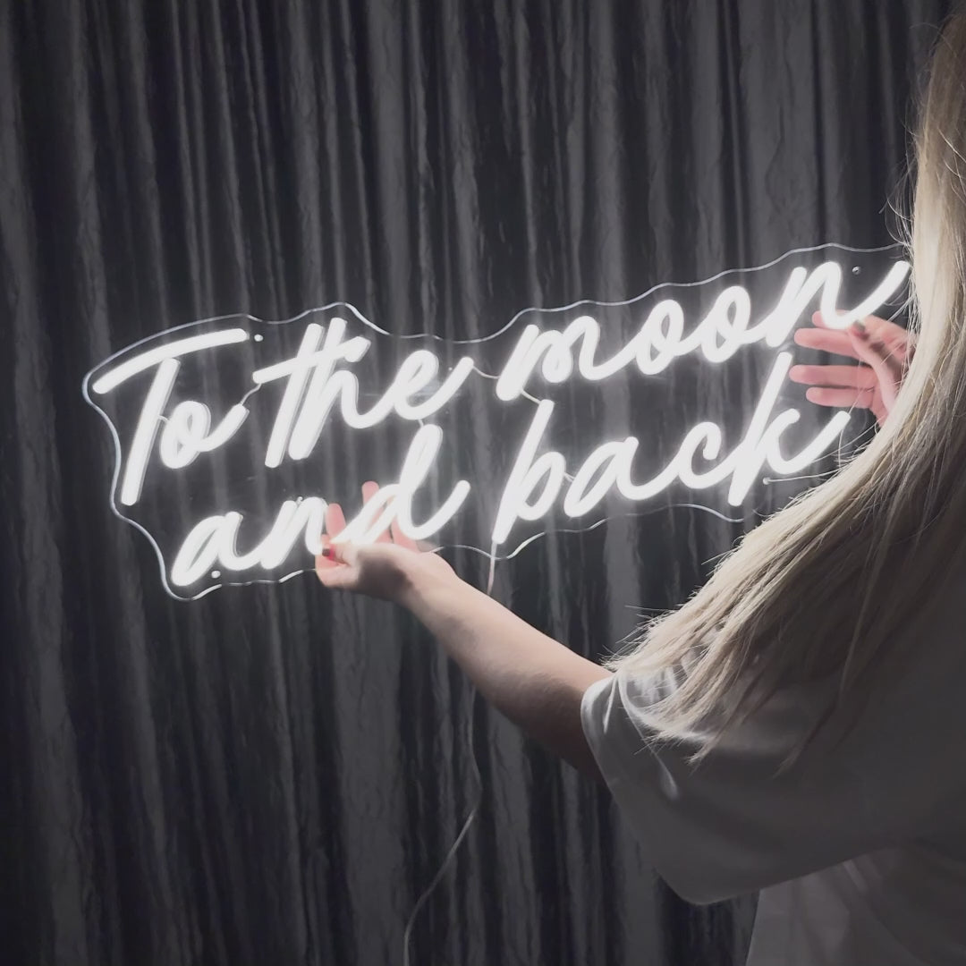 Our To The Moon and Back Neon Lighting takes you on a journey through the stars and adds a touch of cosmic magic to any space you love. Whether it's the children's room, the bedroom, a creative studio, or a trendy cafe, this neon lighting creates an enchanting atmosphere that stimulates the imagination.